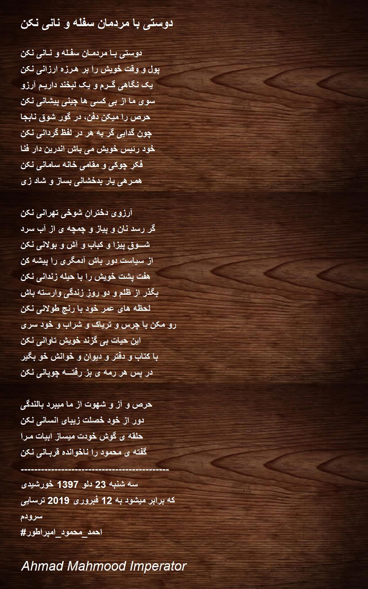 دوستی بـا مردمـان سفـله و نـانی نکن