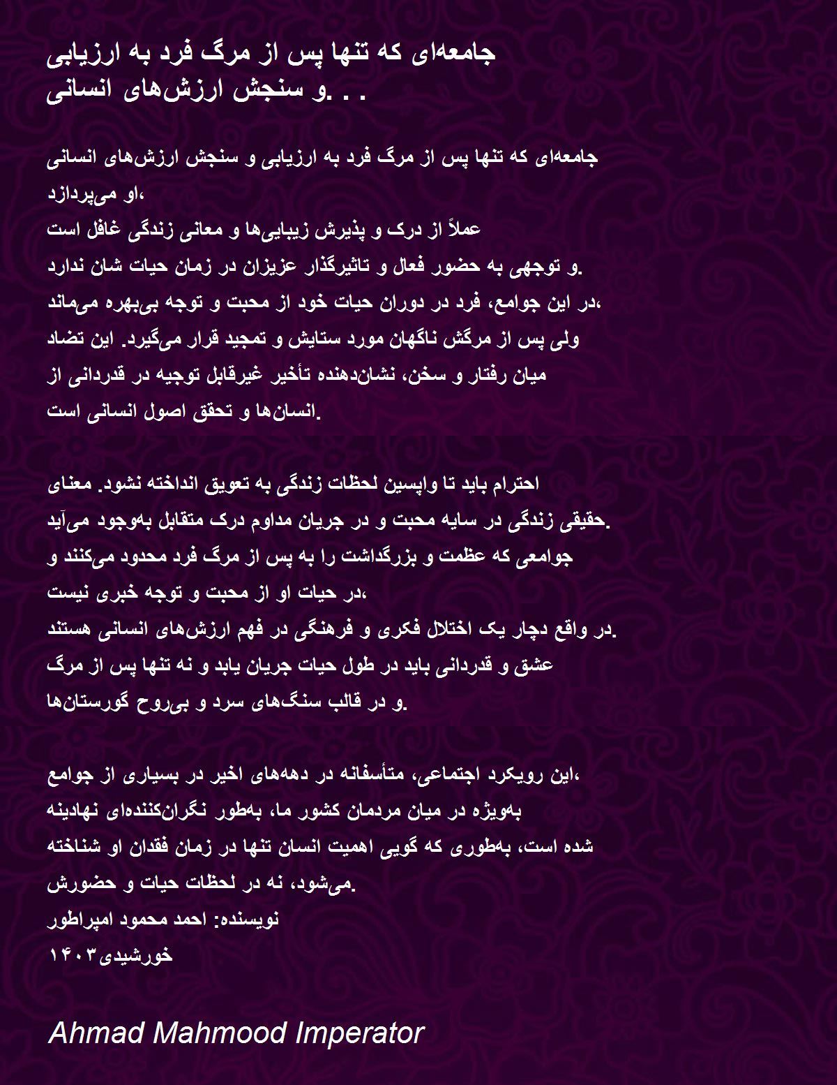 جامعهای که تنها پس از مرگ فرد به ارزیابی و سنجش ارزشهای انسانی او میپردازد،