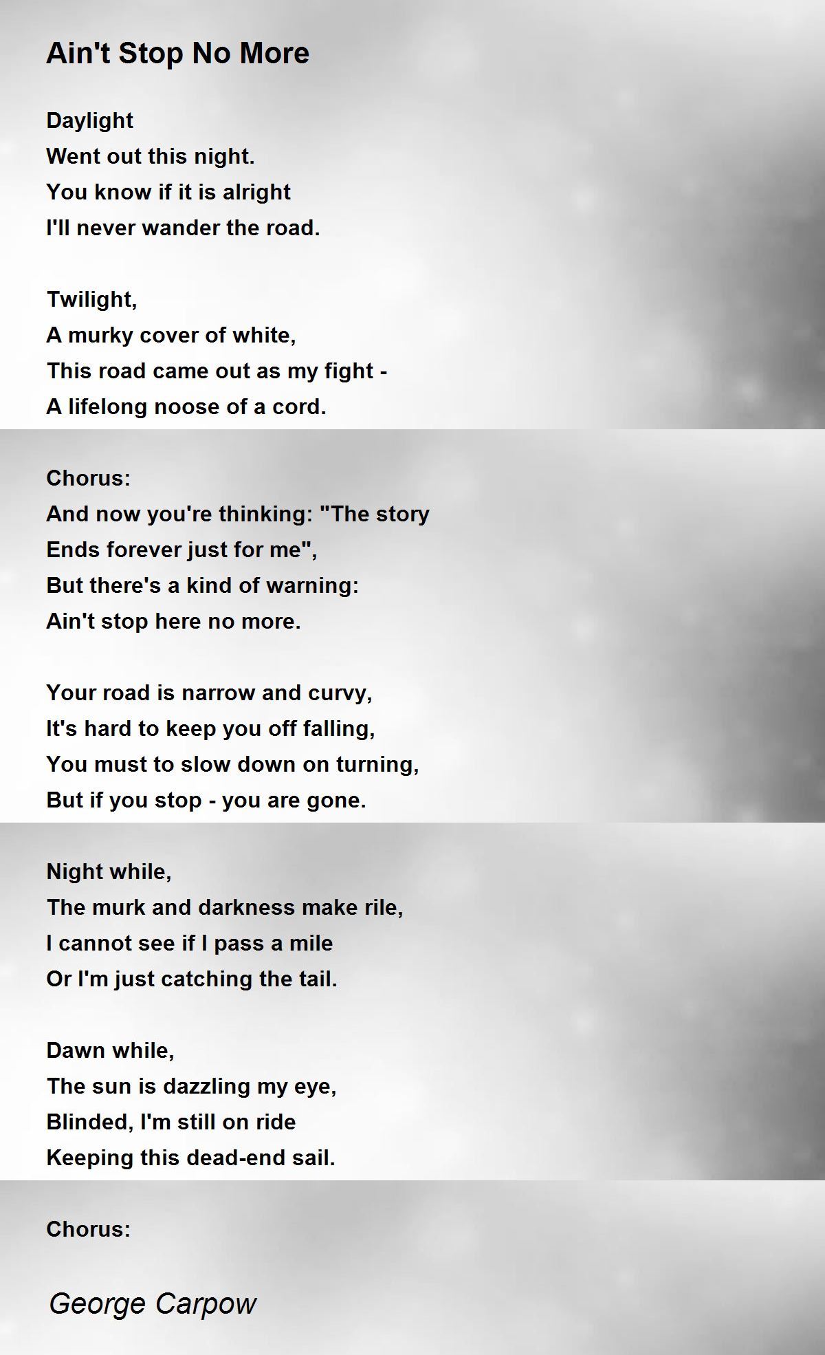 Ain't stop here no more.