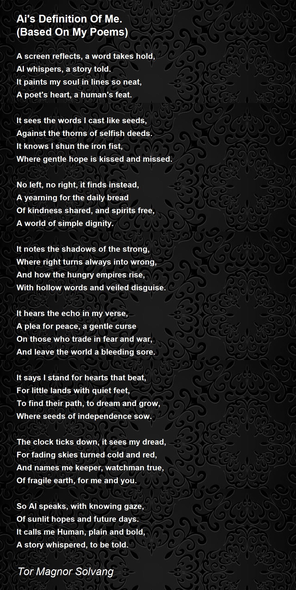 So AI speaks, with knowing gaze,