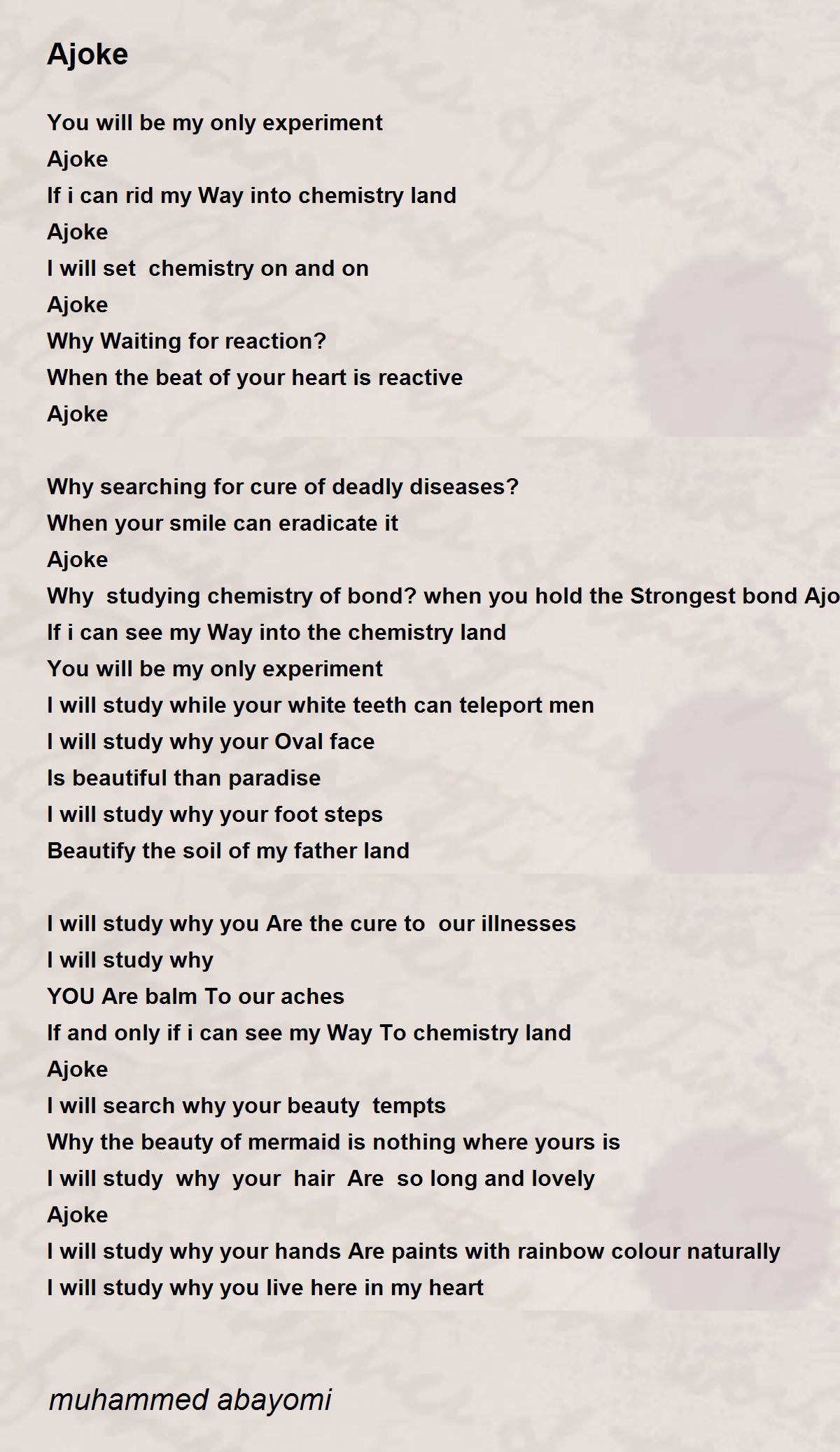 Why studying chemistry of bond? when you hold the Strongest bond Ajoke