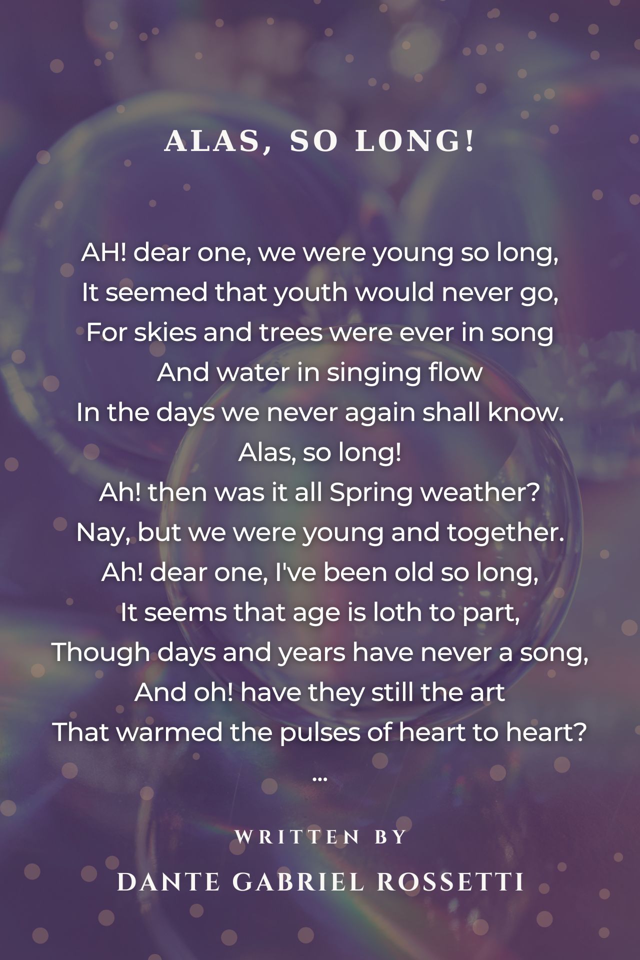 Ah! shall it be then Spring weather, And ah! shall we be young together? Beautifully Penned!