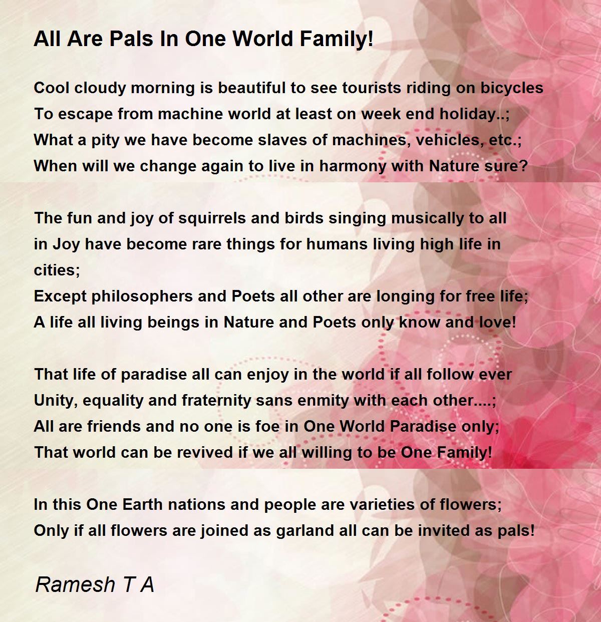 In this One Earth nations and people are varieties of flowers; Only if all flowers are joined as garland all can be invited as pals!