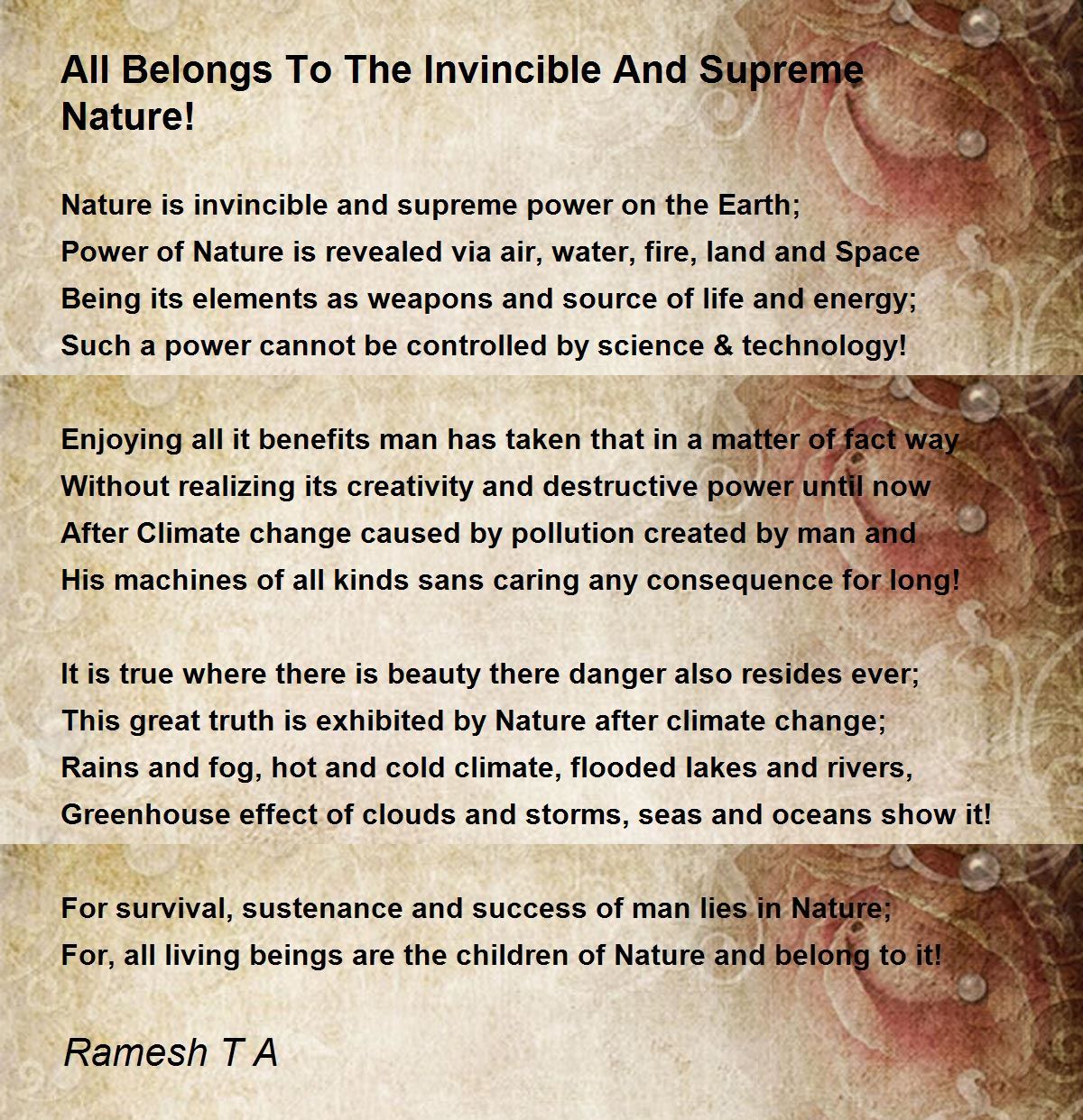 Nature is invincible and supreme power on the Earth;
