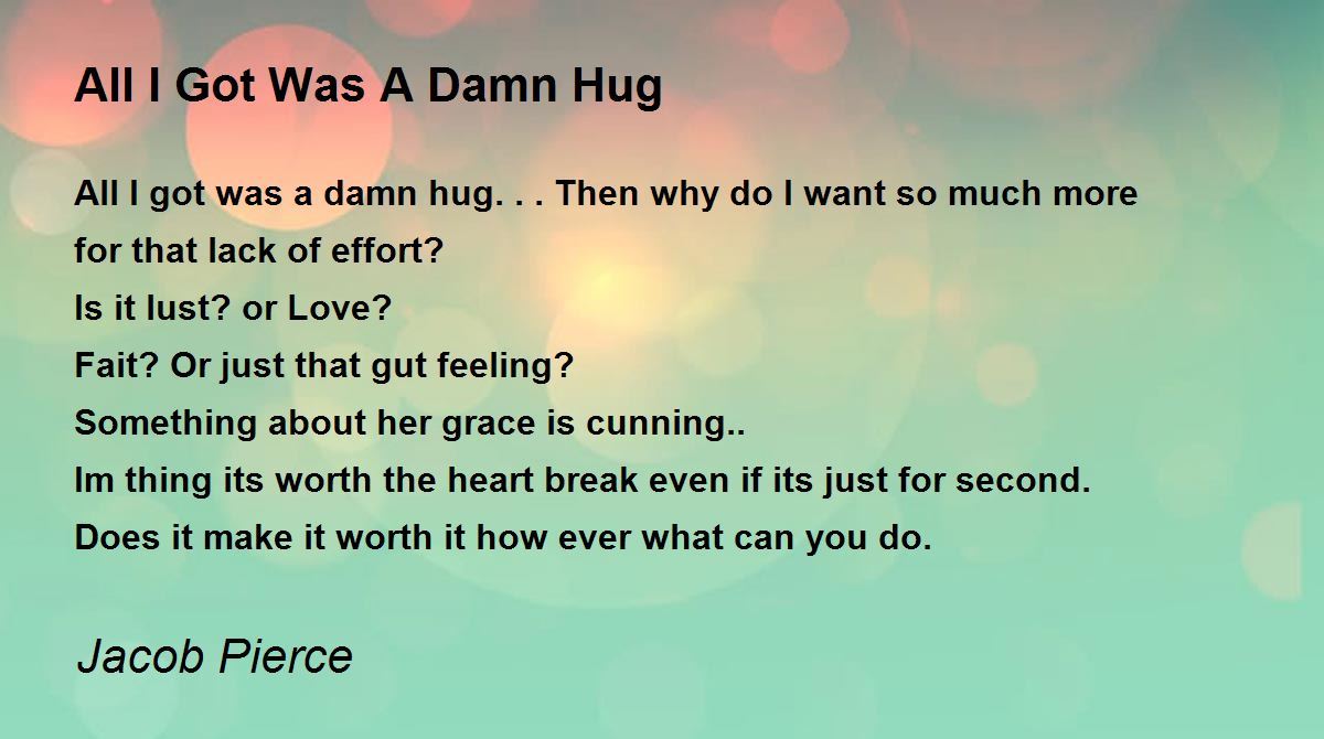 All I got was a damn hug... Then why do I want so much more for that lack of effort?