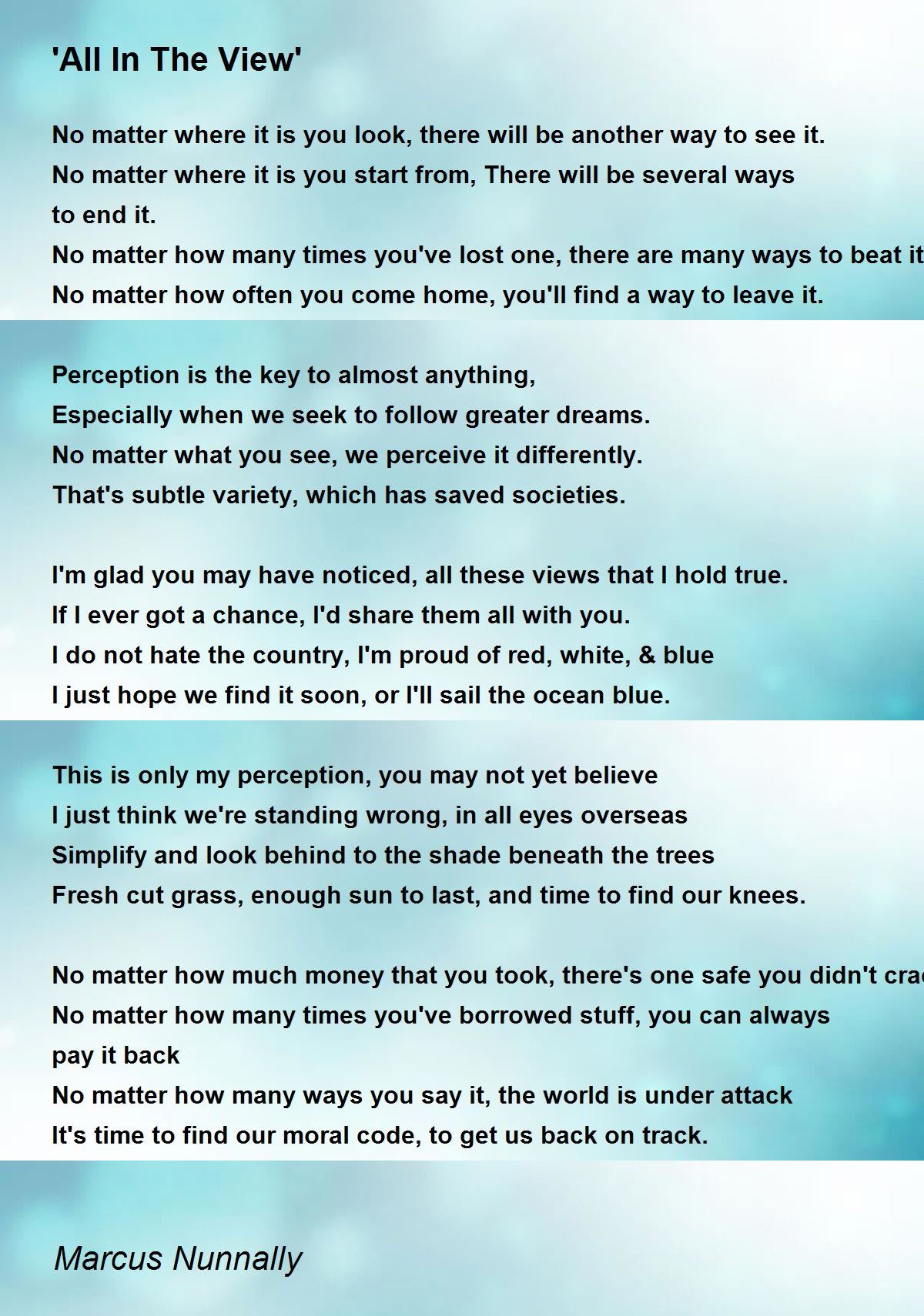 No matter where it is you look, there will be another way to see it.