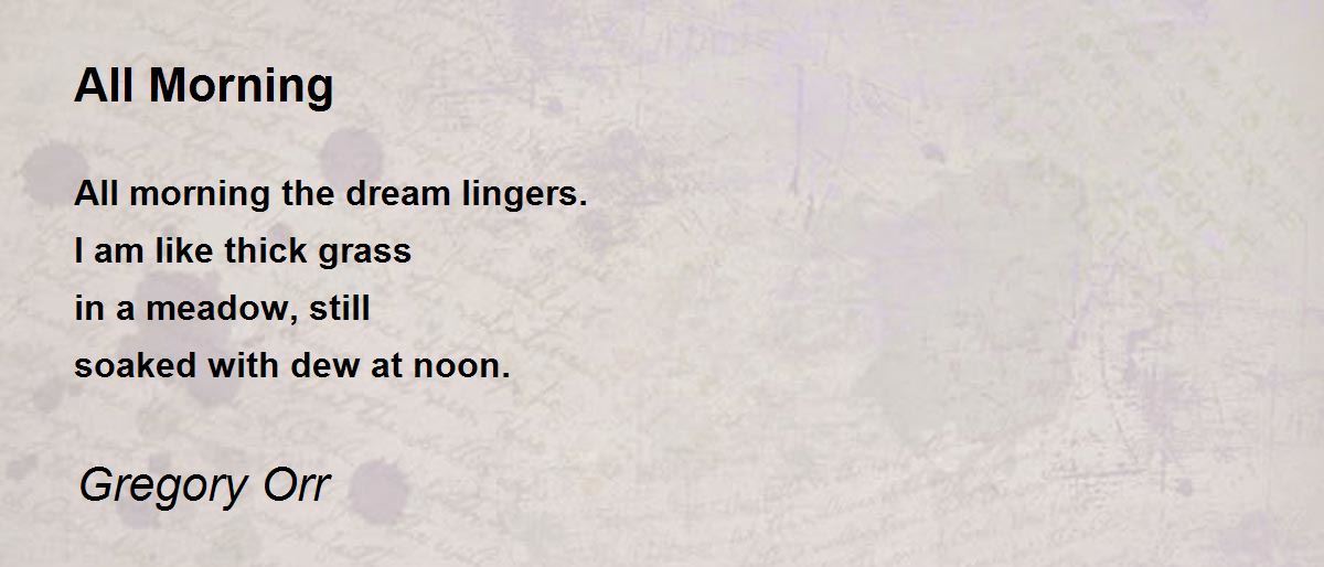 All morning the dream lingers. I am like thick grass in a meadow, still soaked with dew at noon.