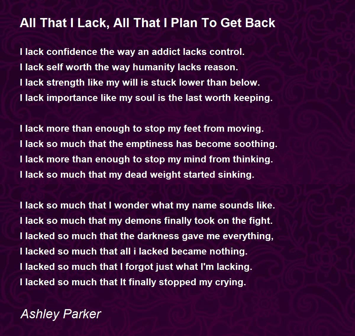 I lacked so much that I forgot just what I'm lacking.