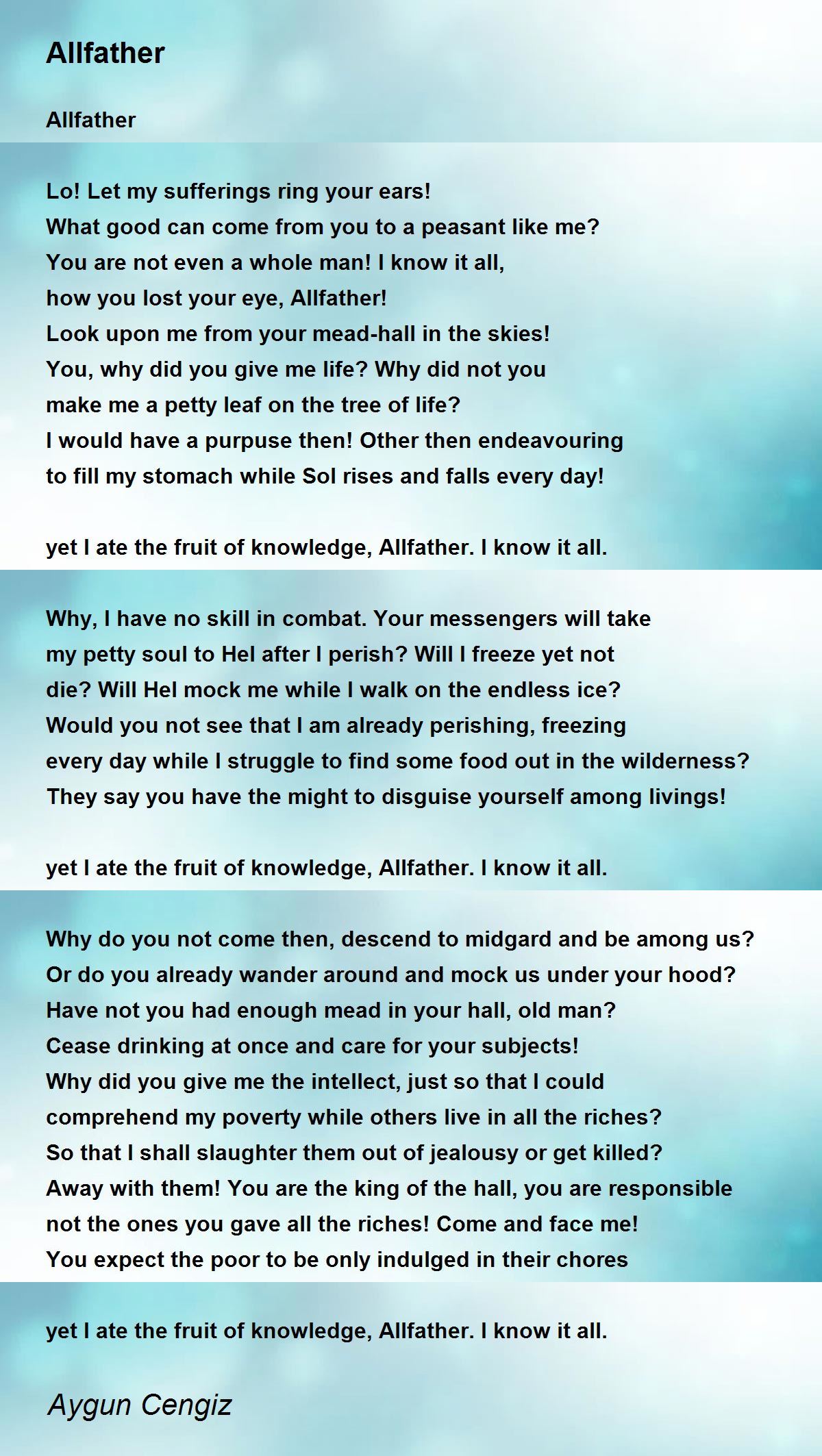 yet I ate the fruit of knowledge, Allfather. I know it all.