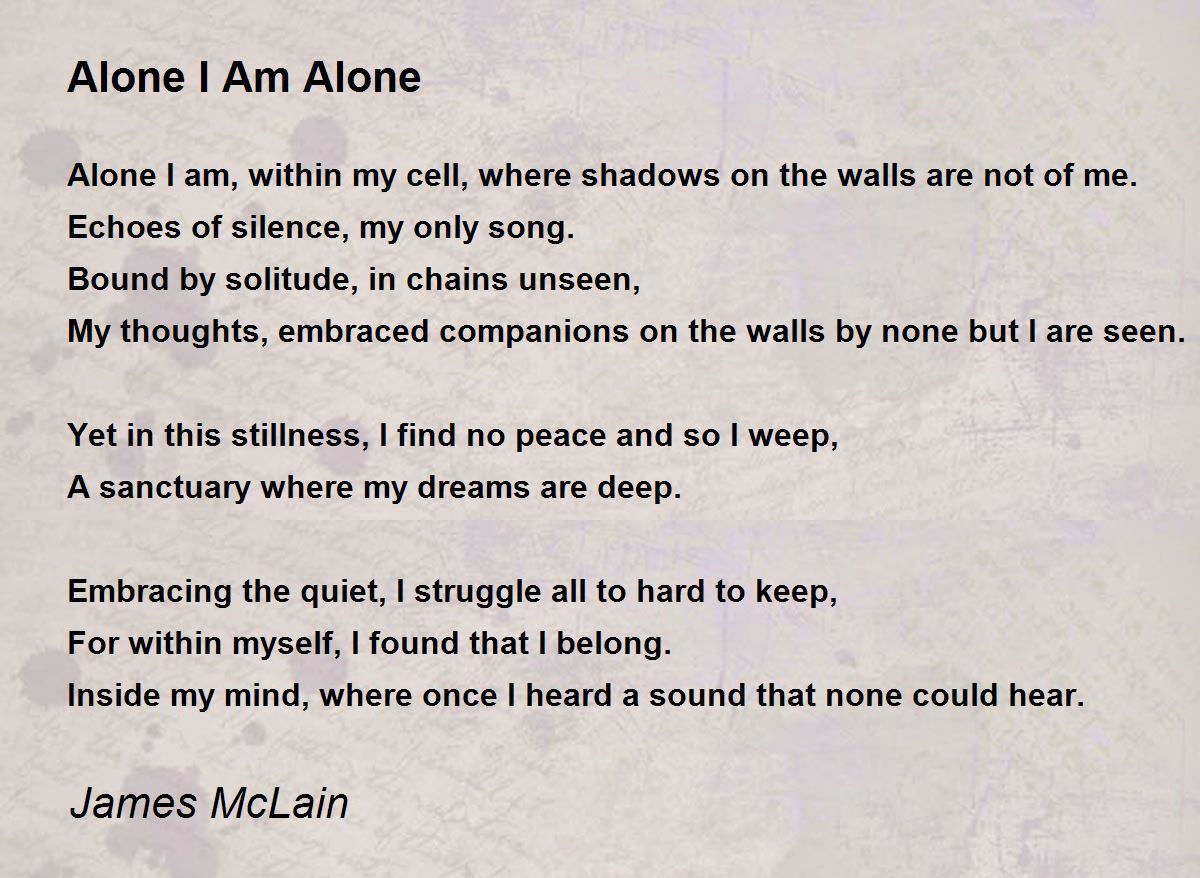 Alone I am, within my cell, where shadows on the walls are not of me.