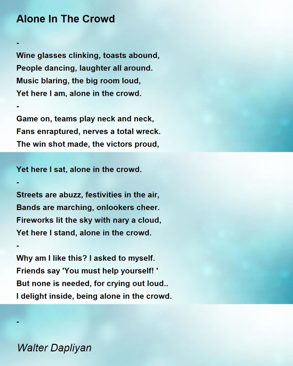 Good train of thought, well articulated and insightfully penned in poetic diction with conviction. Nice piece of poetry that depicts the chilling nature of loneliness with lovely rhyme scheme. Thanks for sharing Walter. Please read my poem MANDELA - THE IMMORTAL ICON.