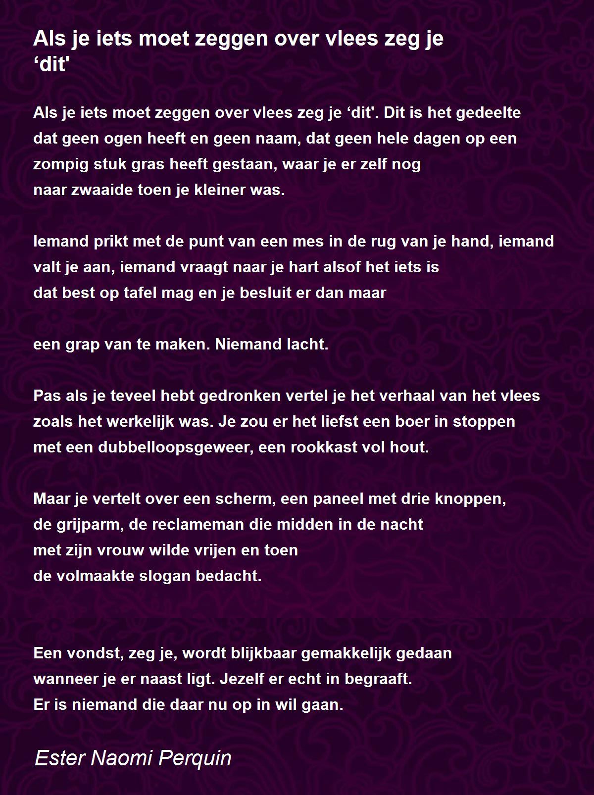 Als je iets moet zeggen over vlees zeg je ‘dit'. Dit is het gedeelte