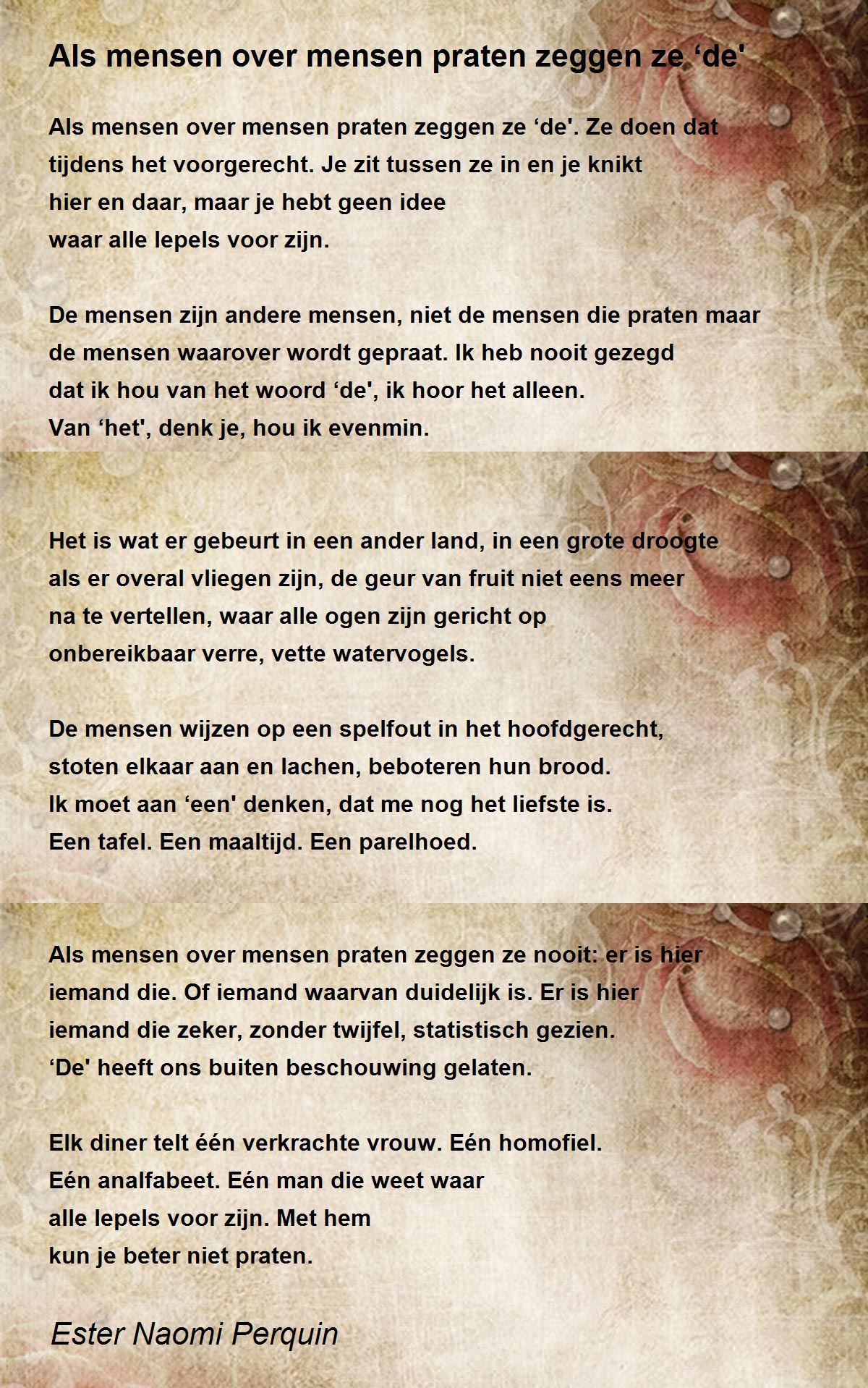 Als mensen over mensen praten zeggen ze nooit: er is hier
