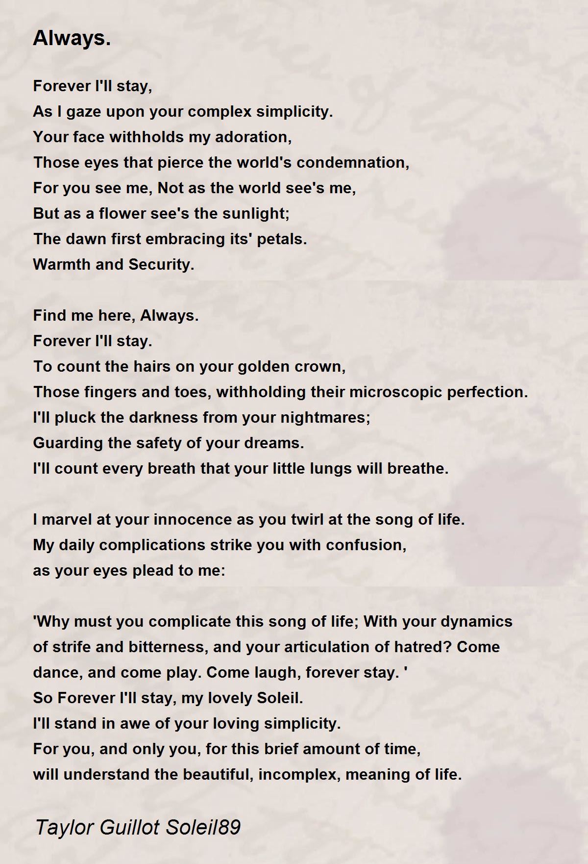 So Forever I'll stay, my lovely Soleil.