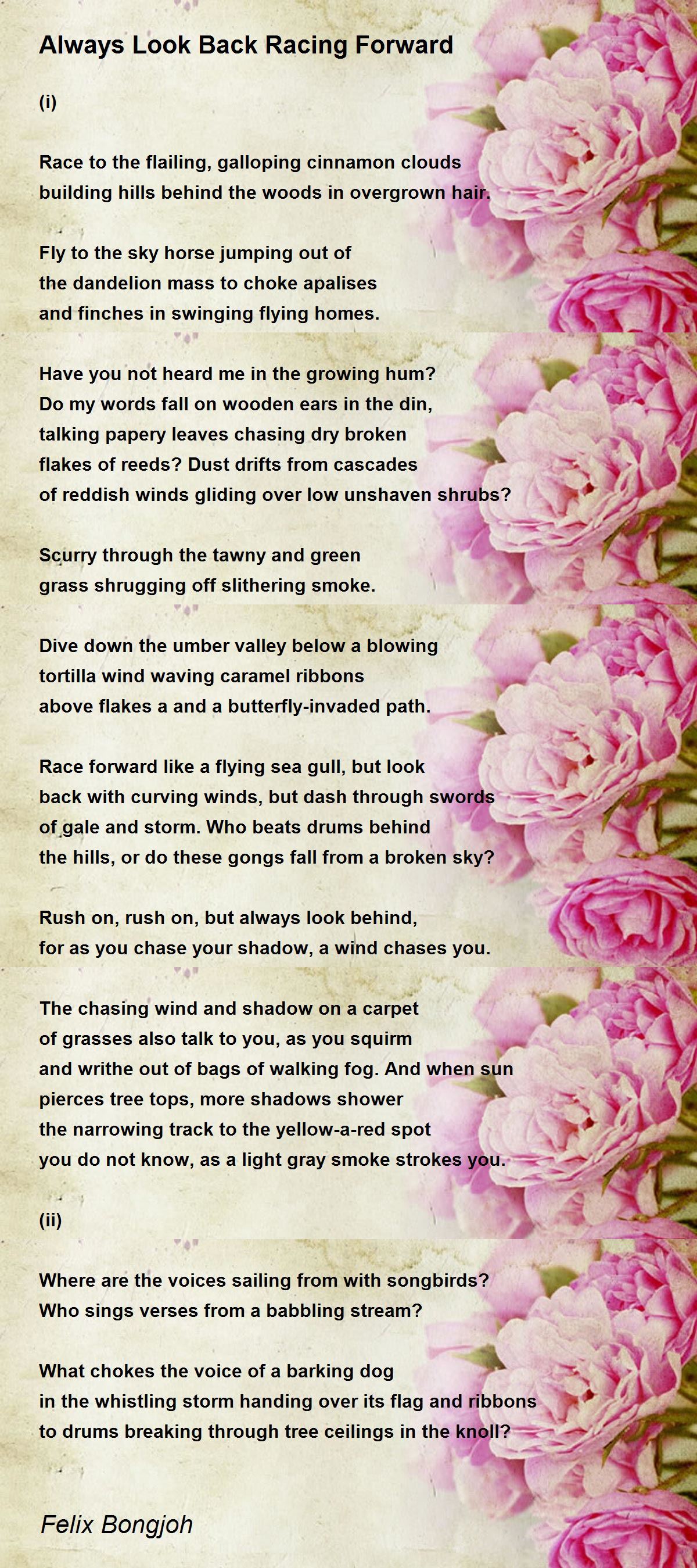 Rush on, rush on, but always look behind,
