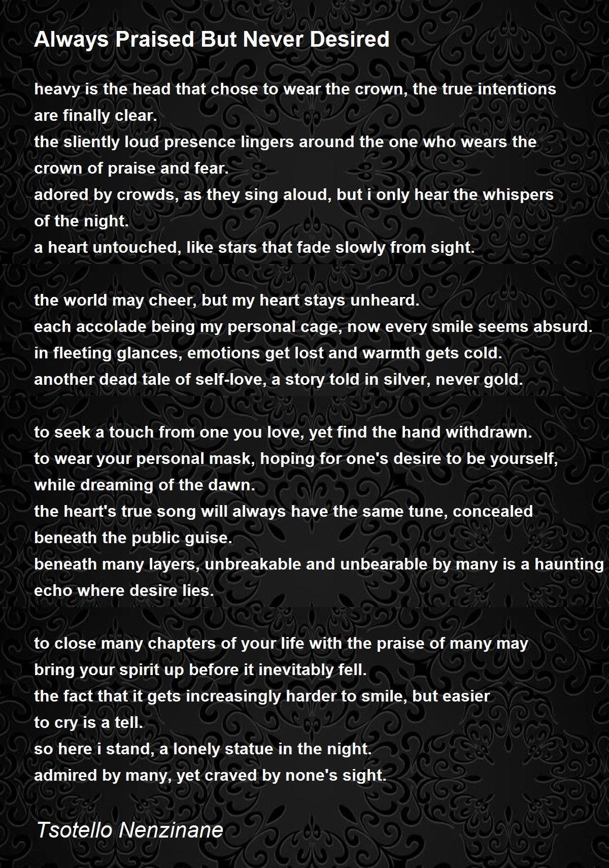 the sliently loud presence lingers around the one who wears the crown of praise and fear.