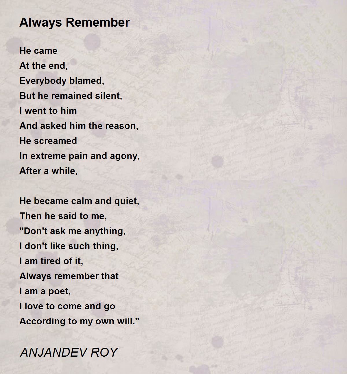 I am a poet, I love to come and go According to my own will. Nice lines.