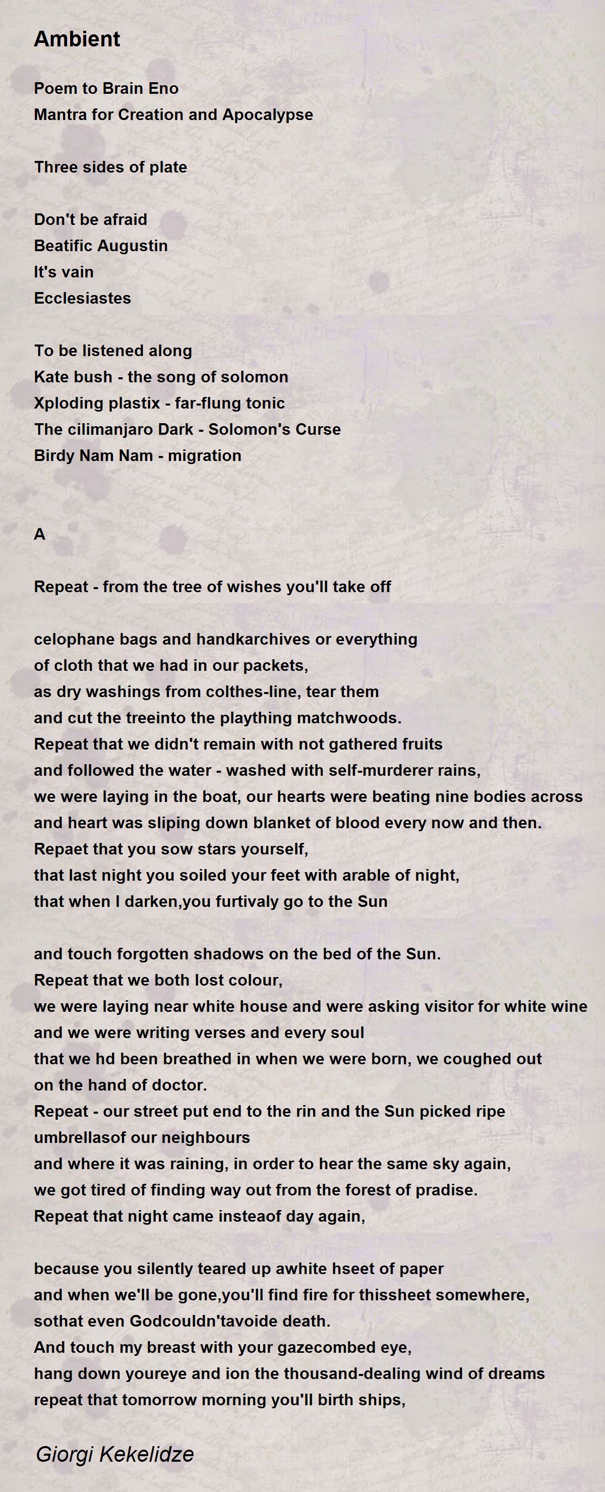 Poem to Brain Eno