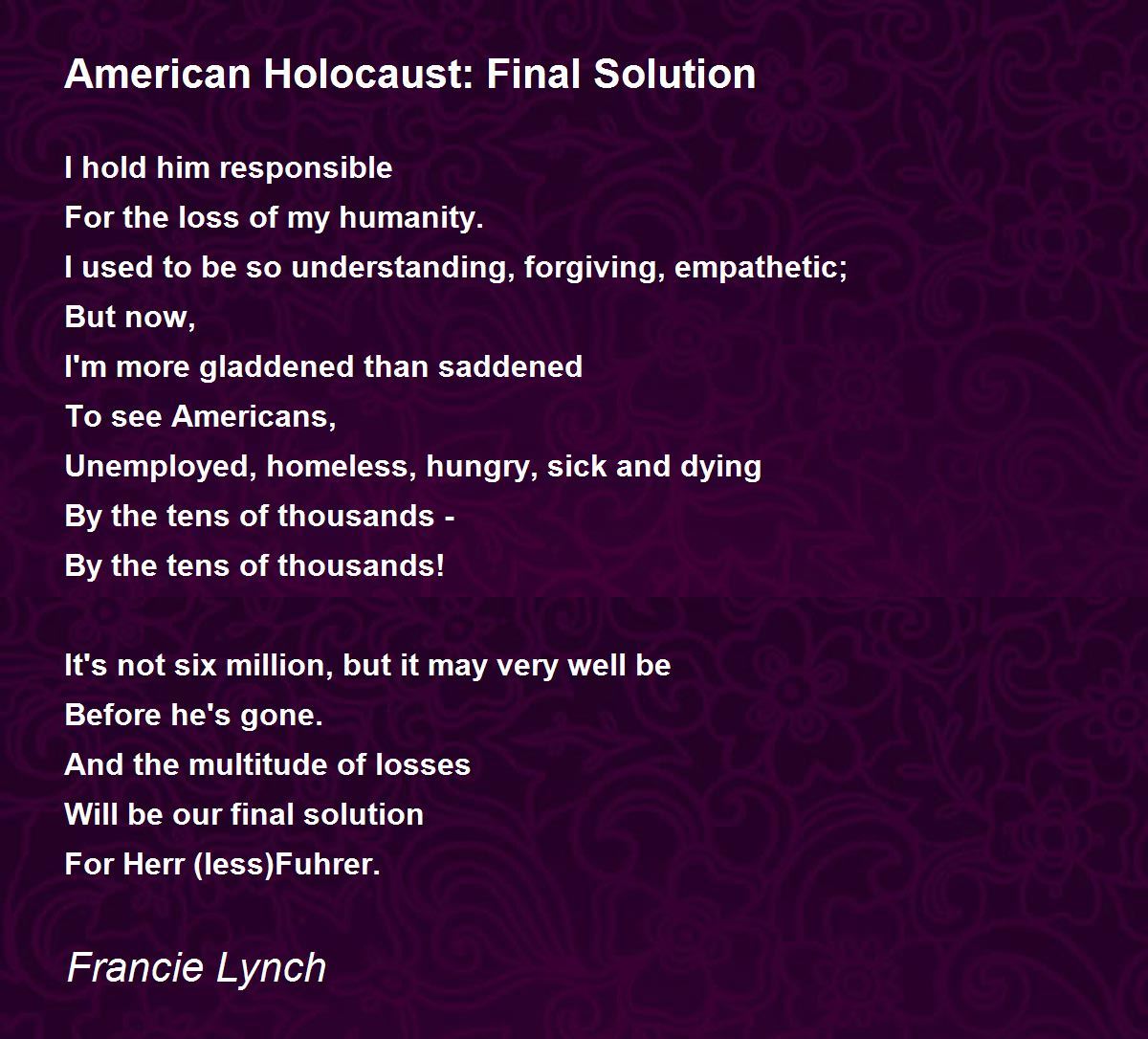 I'm more gladdened than saddened To see Americans, Unemployed, homeless, hungry, sick and dying......ironically written