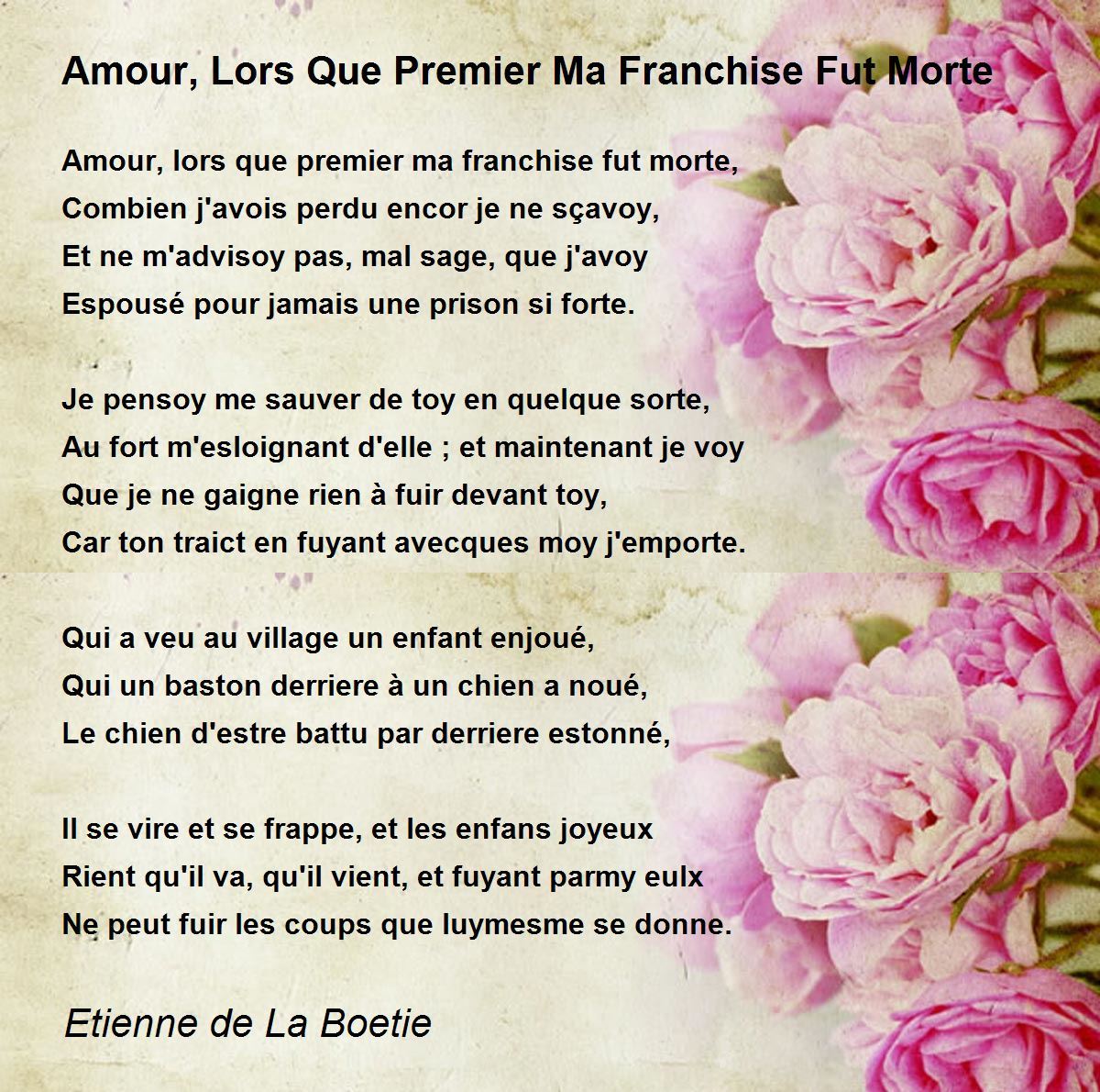 Amour, lors que premier ma franchise fut morte,