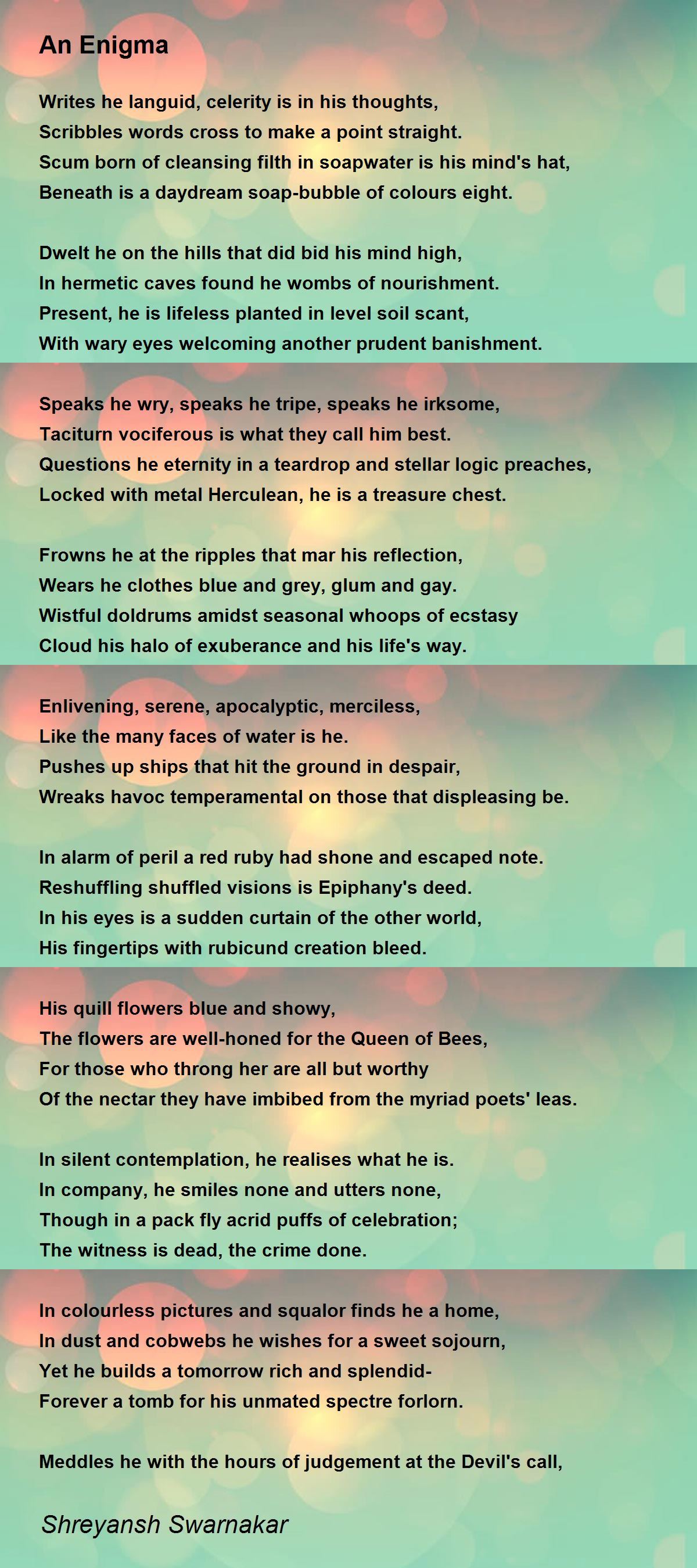 Scum born of cleansing filth in soapwater is his mind's hat,