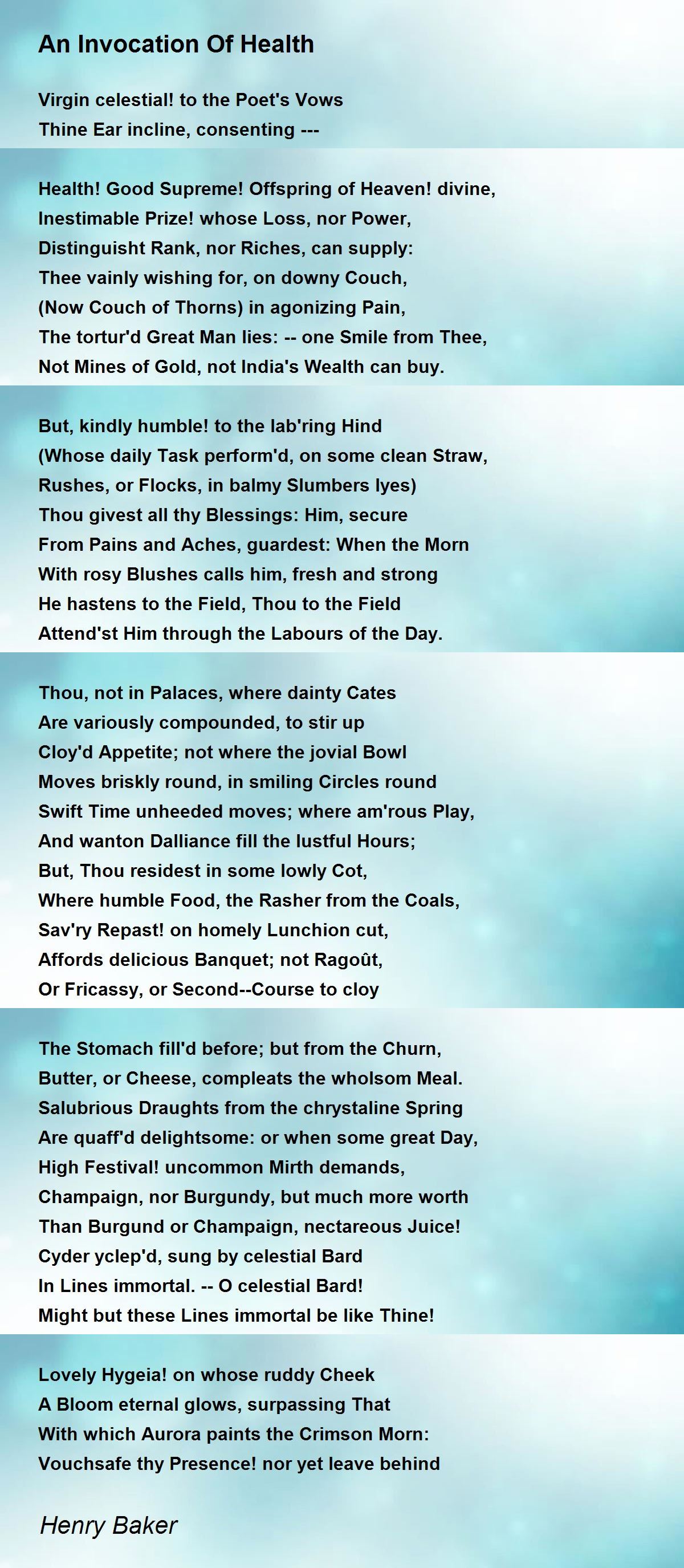Health! Good Supreme! Offspring of Heaven! divine,