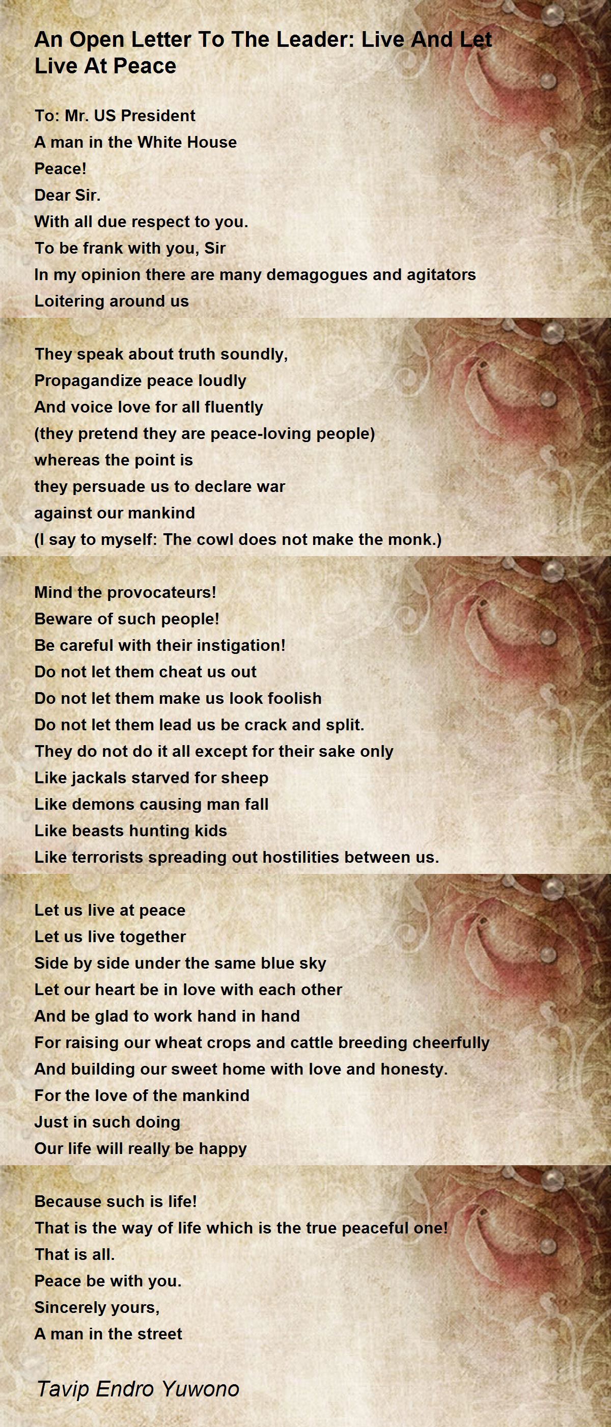 Let us live at peace