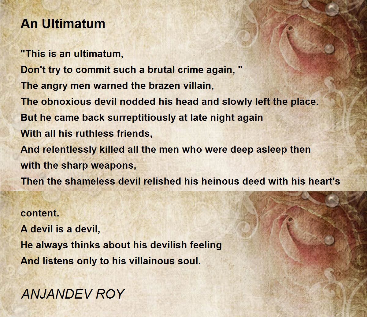 A devil is a devil, He always thinks about his devilish feeling And listens only to his villainous soul. True voice