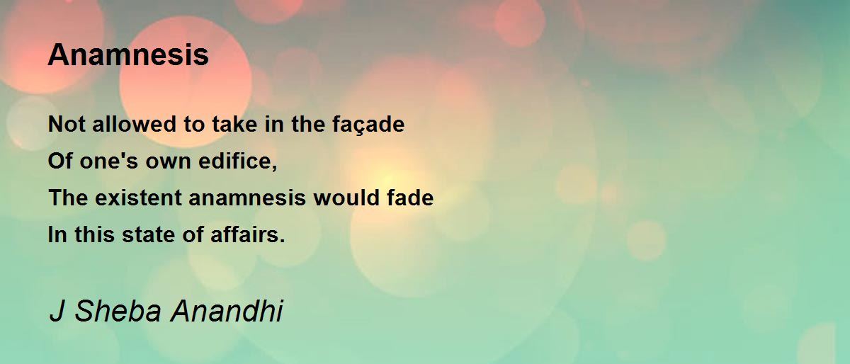 Not allowed to take in the façade Of one's own edifice, The existent anamnesis would fade In this state of affairs.