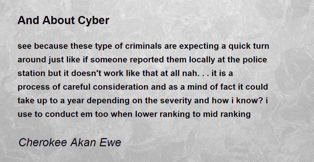 see because these type of criminals are expecting a quick turn around just like if someone reported them locally at the police station but it doesn't work like that at all nah...it is a process of careful consideration and as a mind of fact it could take up to a year depending on the severity and how i know? i use to conduct em too when lower ranking to mid ranking