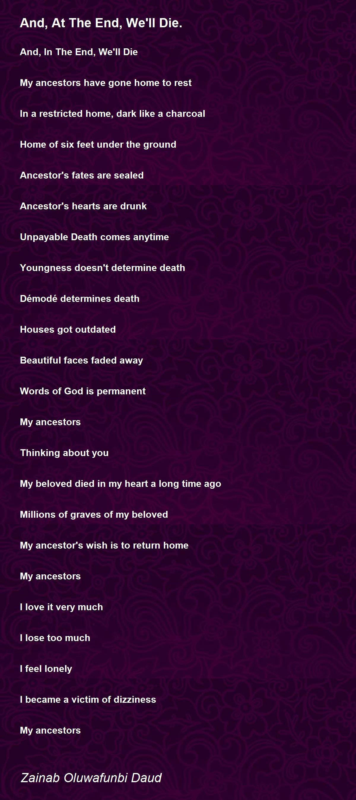 And, In The End, We'll Die