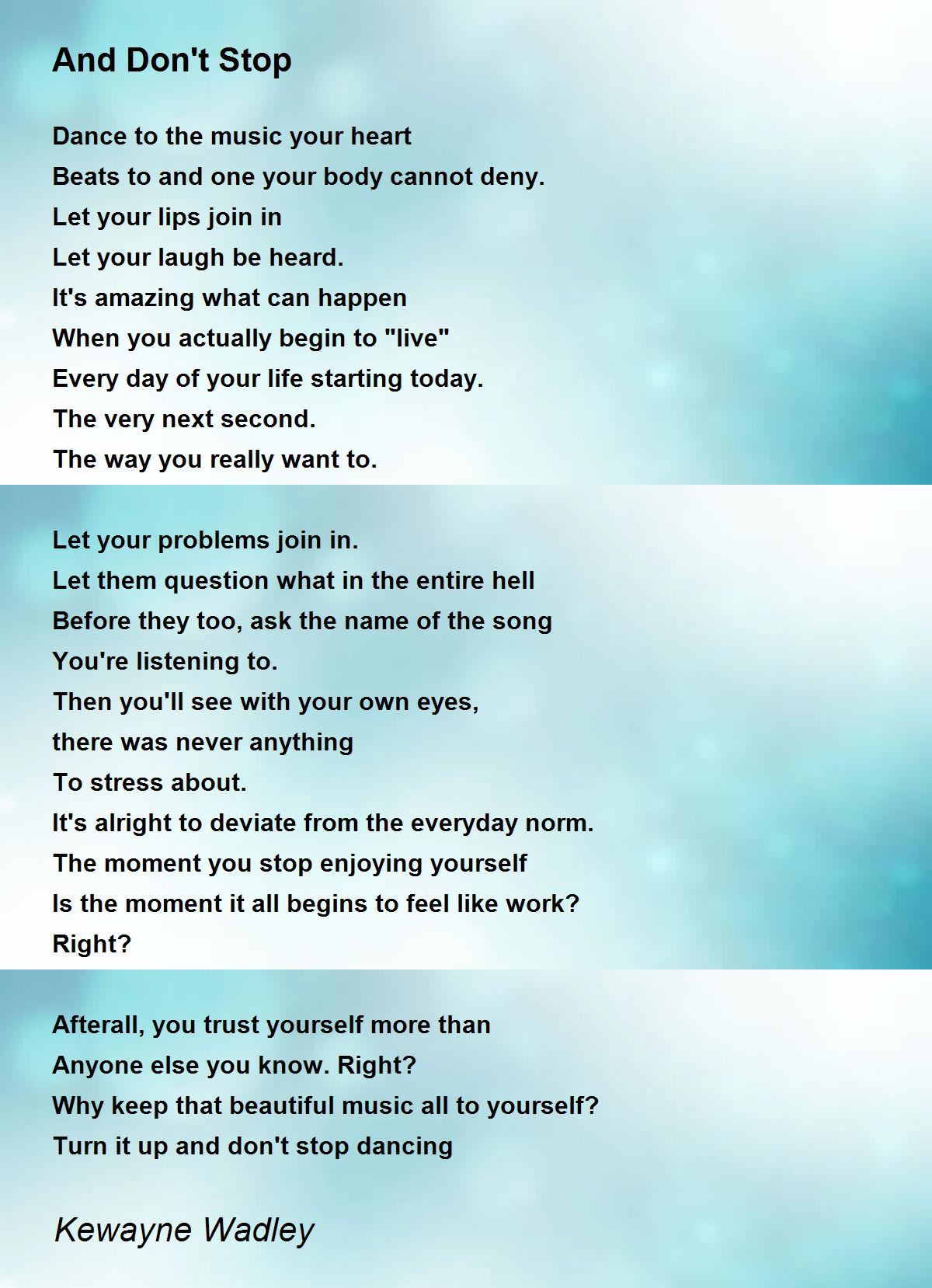 Turn it up and don't stop dancing