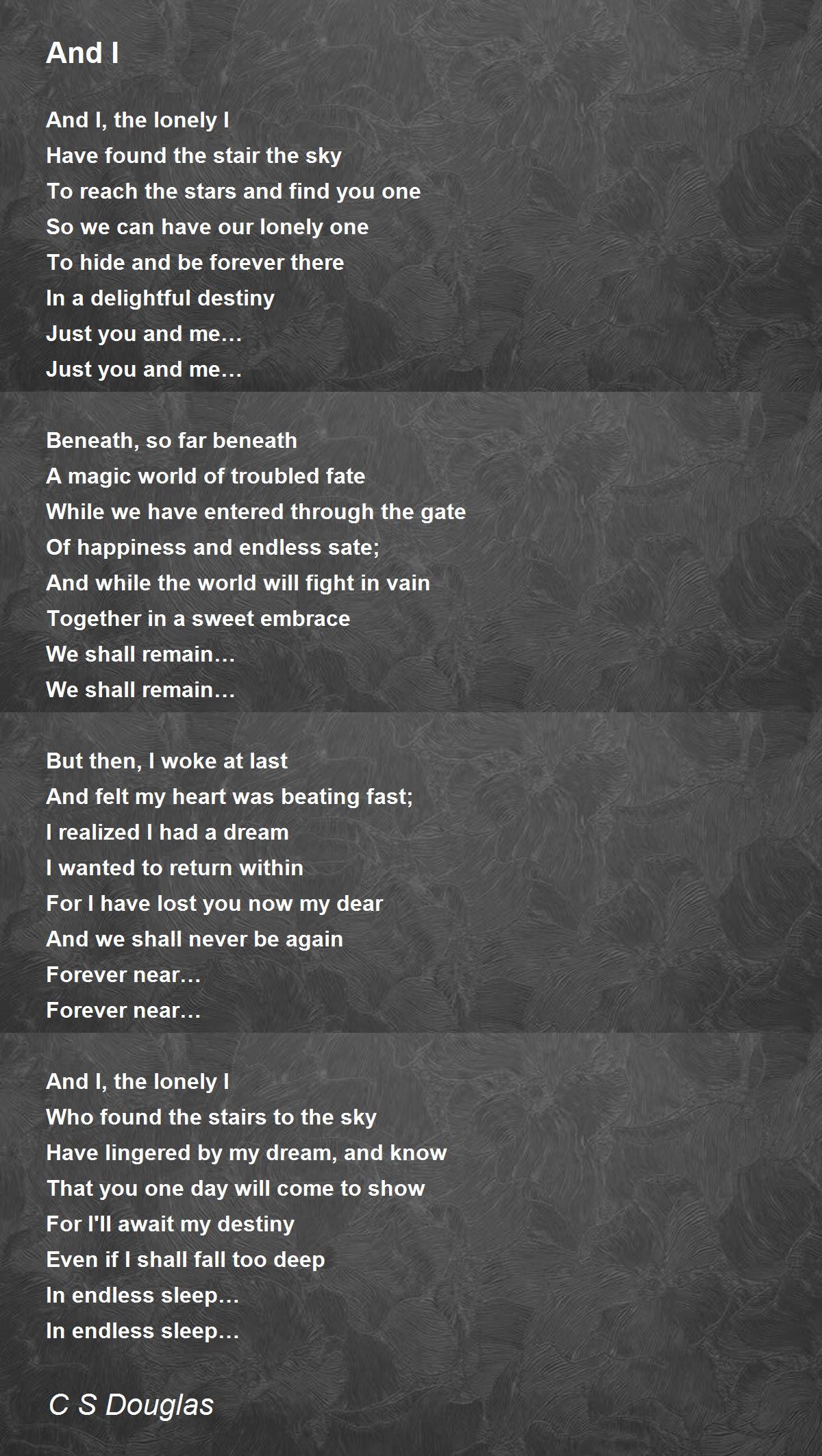 And I, the lonely I
