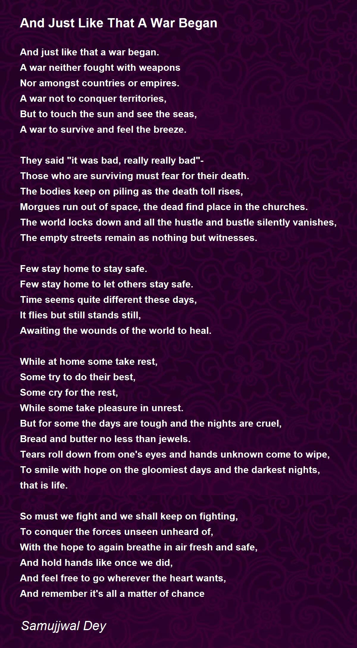 Excellent poem. on. Corona