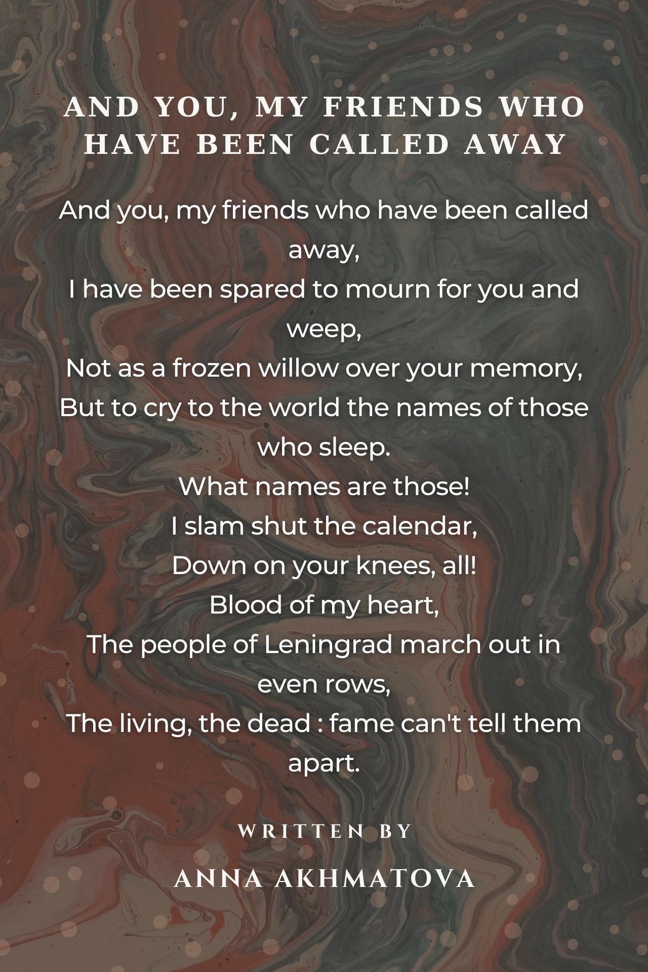 'The living, the dead: fame can't tell them apart'. Another memorable poem from renowned Russian poet Anna Akhmatova.
