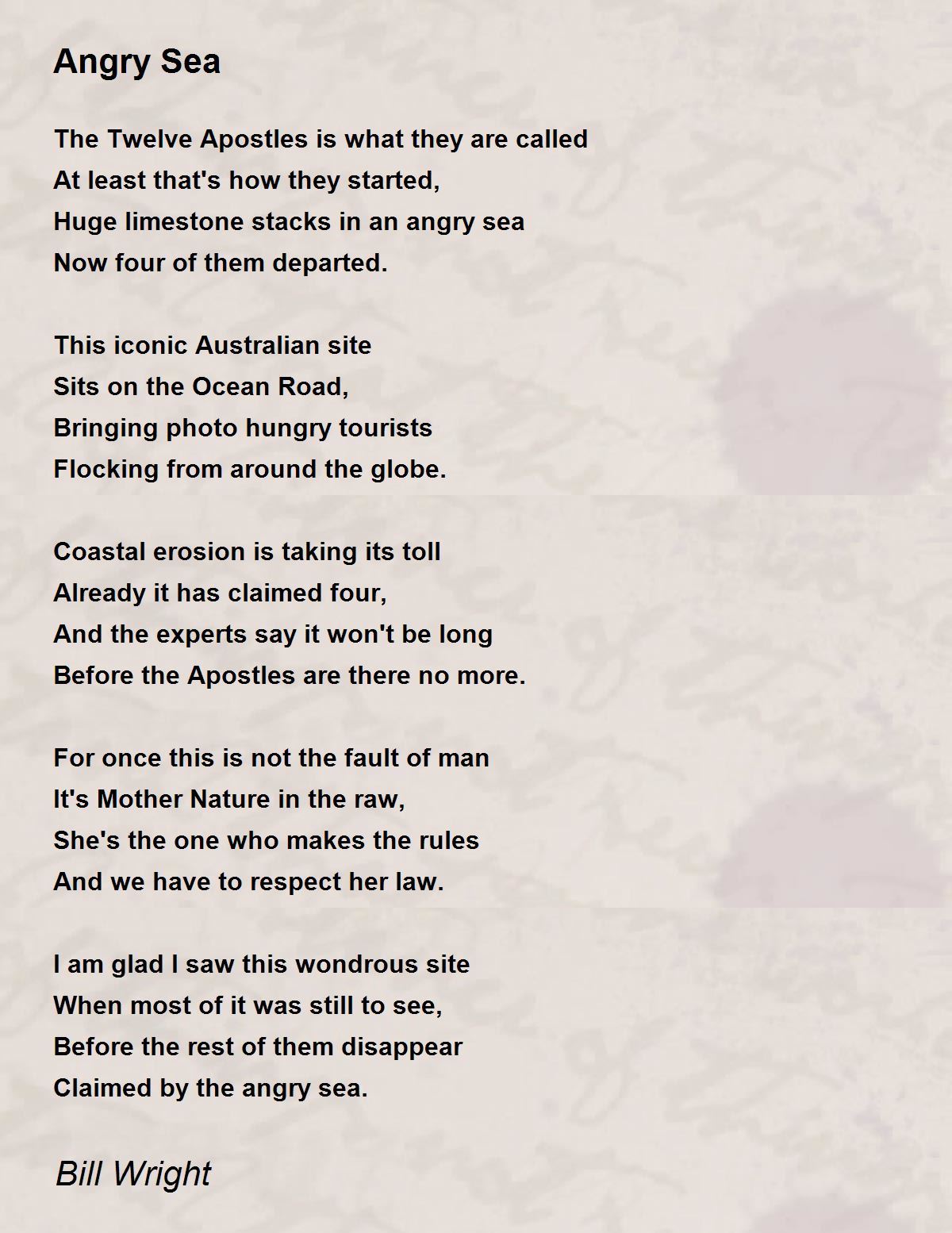 Angry Sea Poem by Bill Wright
