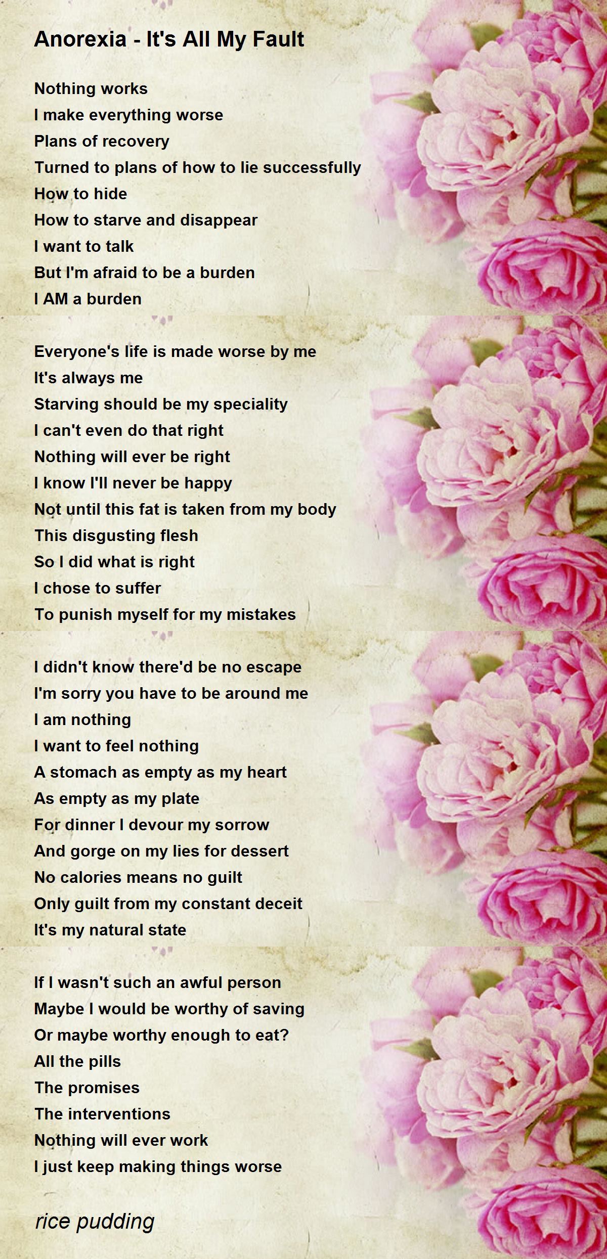 For dinner I devour my sorrow