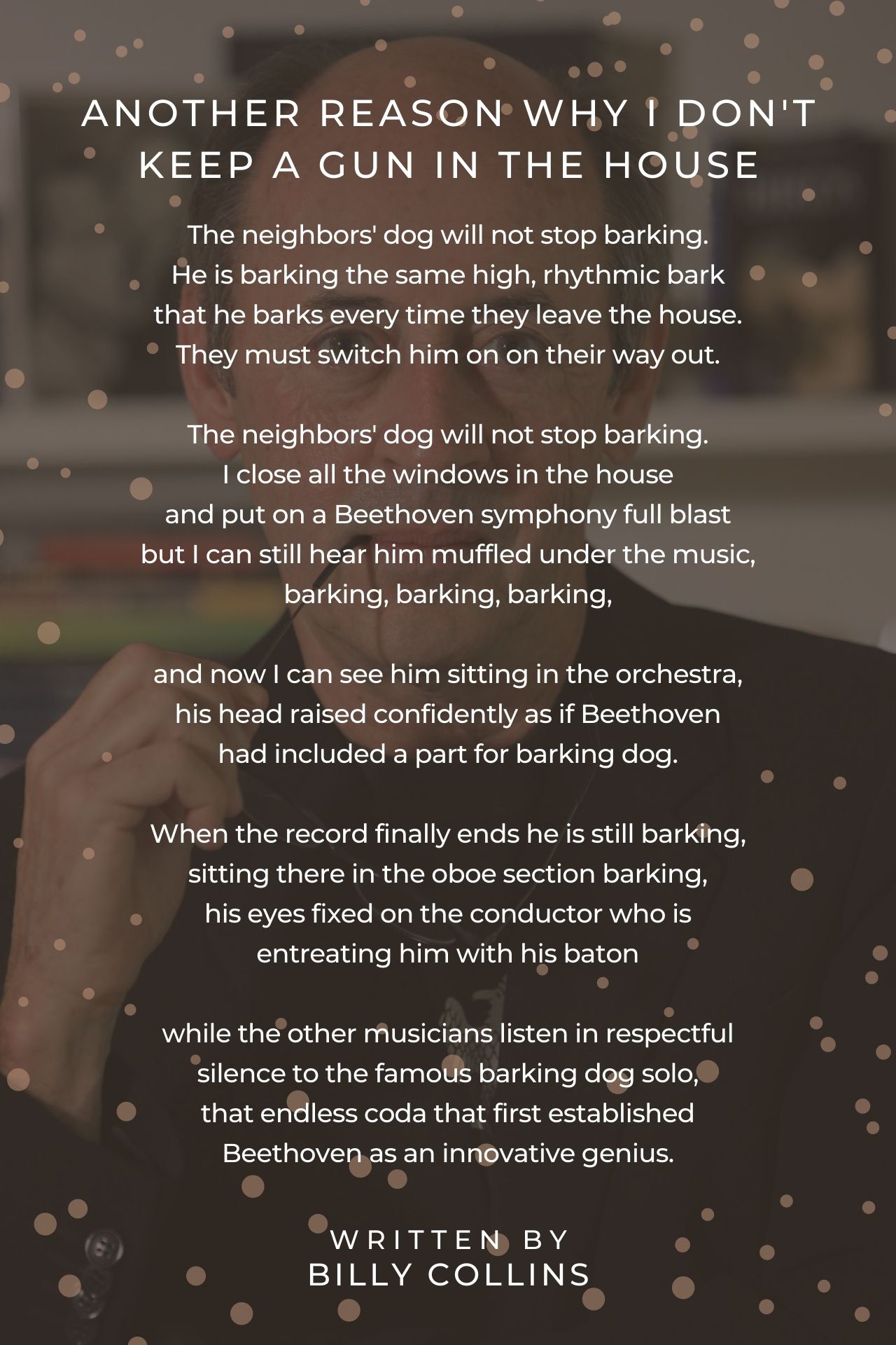 My second favorite poem ever.... and the poem which led me to my favorite poet ever... Billy Collins the maestro.... Thank you Billy... Enjoyed your recent visit to Vanderbilt University, please come again.