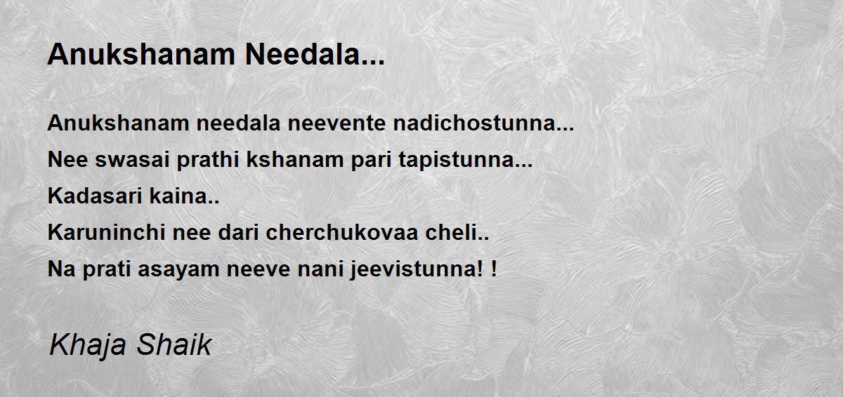 Anukshanam needala neevente nadichostunna...