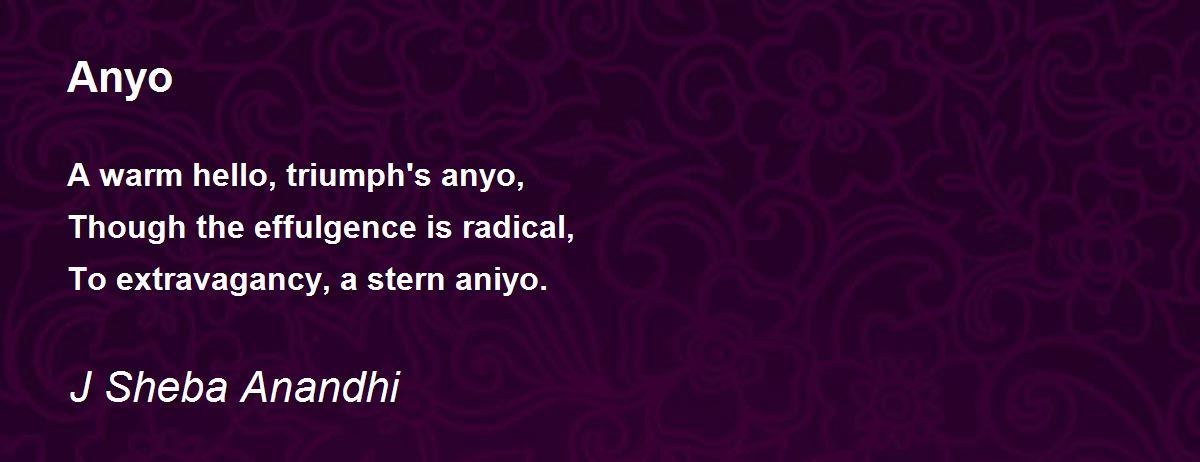 A warm hello, triumph's anyo, Though the effulgence is radical, To extravagancy, a stern aniyo.