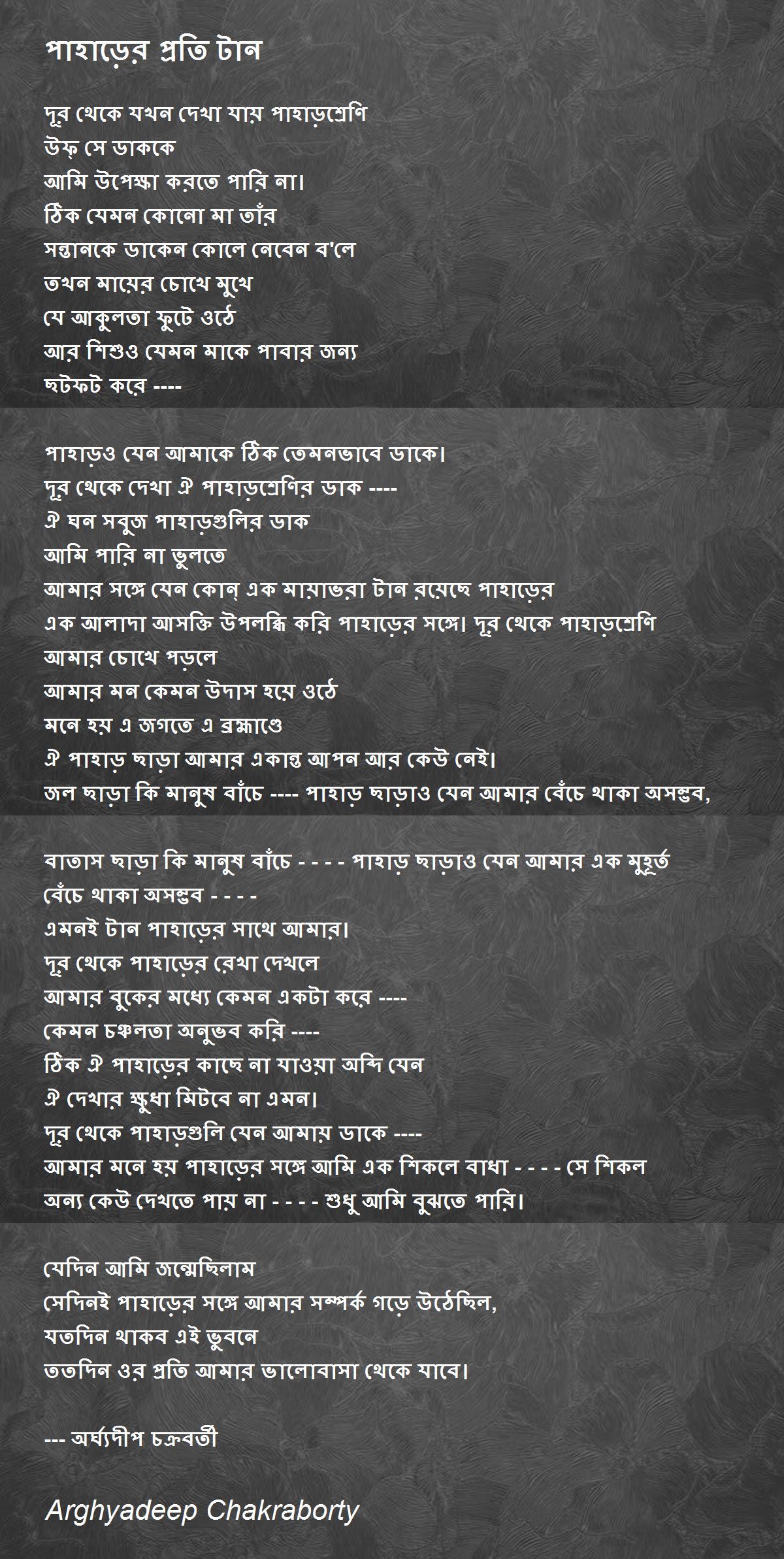 আমার মনে হয় পাহাড়ের সঙ্গে আমি এক শিকলে বাধা ---- সে শিকল অন্য কেউ দেখতে পায় না ---- শুধু আমি বুঝতে পারি।