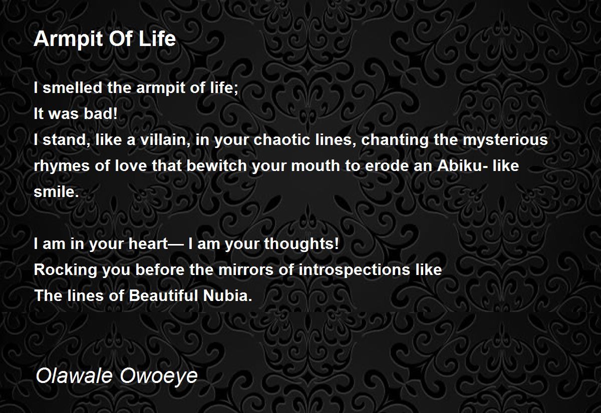 I stand, like a villain, in your chaotic lines, chanting the mysterious rhymes of love that bewitch your mouth to erode an Abiku-like smile.