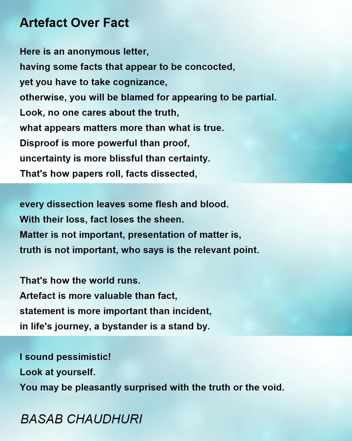 Artefact is more valuable than fact,
