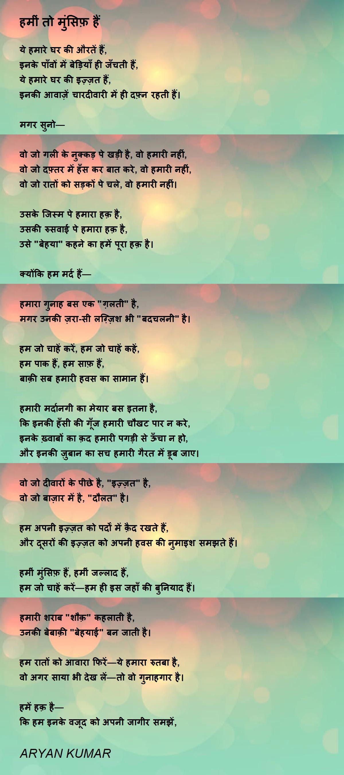 और दूसरों की इज़्ज़त को अपनी हवस की नुमाइश समझते हैं।