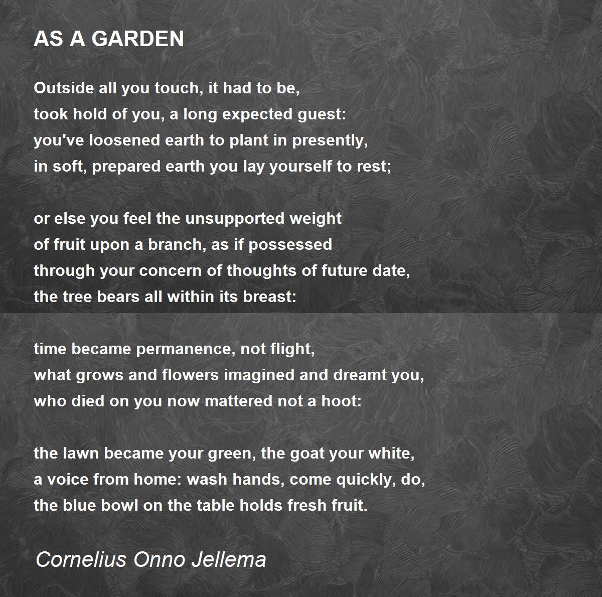 in soft, prepared earth you lay yourself to rest;