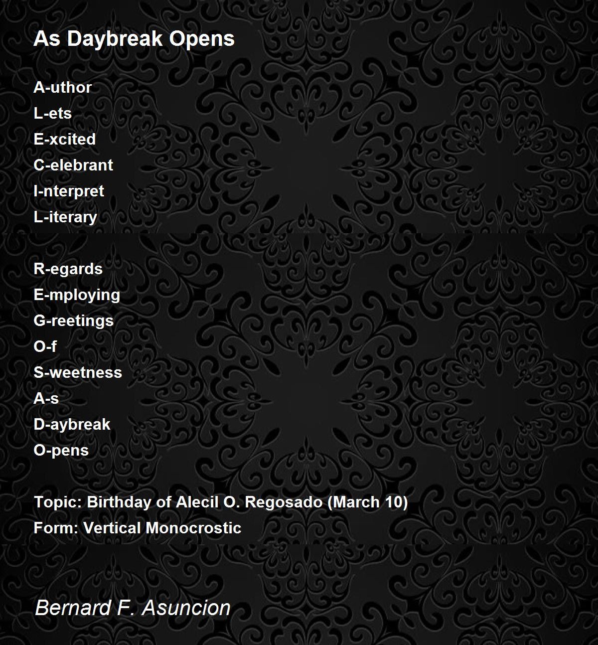 Topic: Birthday of Alecil O. Regosado (March 10)