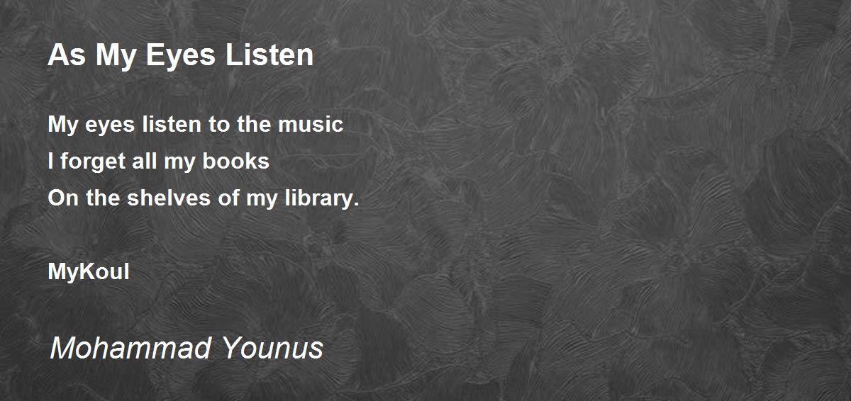 My eyes listen to the music I forget all my books On the shelves of my library. MyKoul