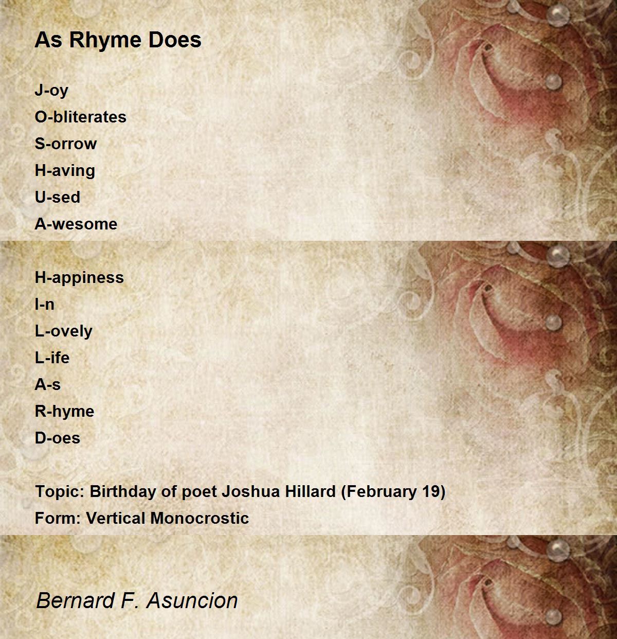 Topic: Birthday of poet Joshua Hillard (February 19)
