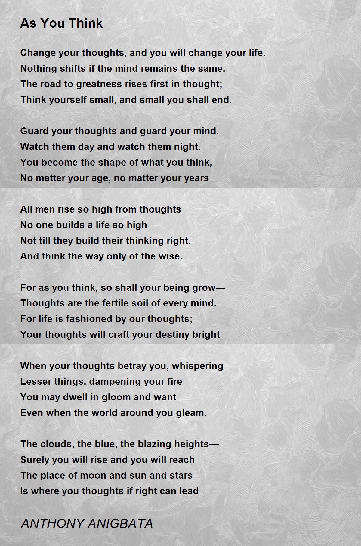 For life is fashioned by our thoughts;
