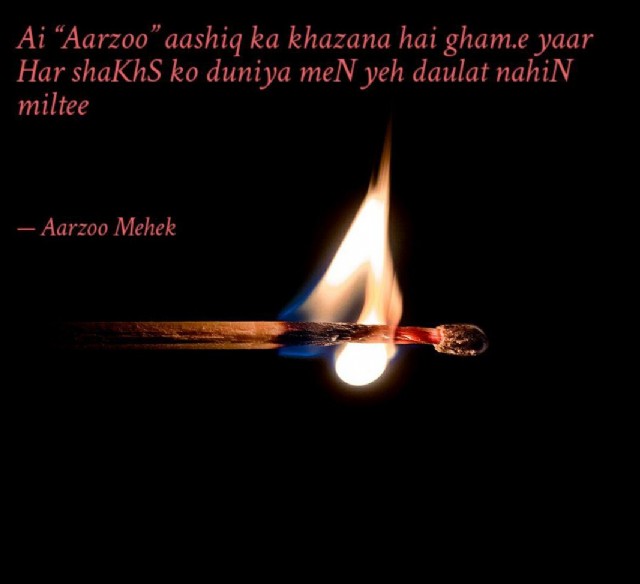 Ai "Aarzoo" ashiq ka khazaana hai gham.e yaar